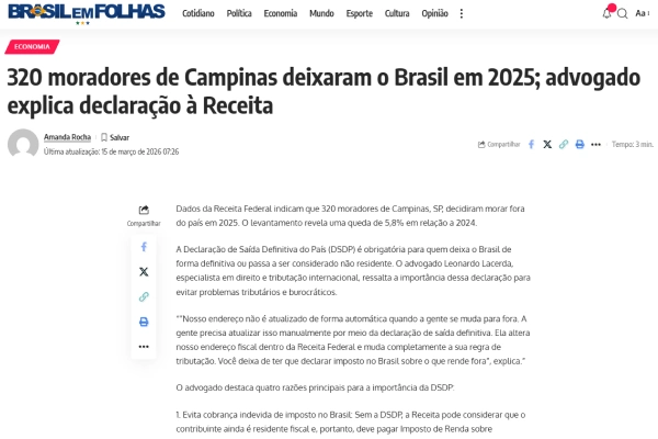 Dr. Leonardo Lacerda é advogado especialista em tributação internacional com formação em direito tributário e já atendeu mais de 1.000 expatriados que regularizaram sua situação fiscal.
